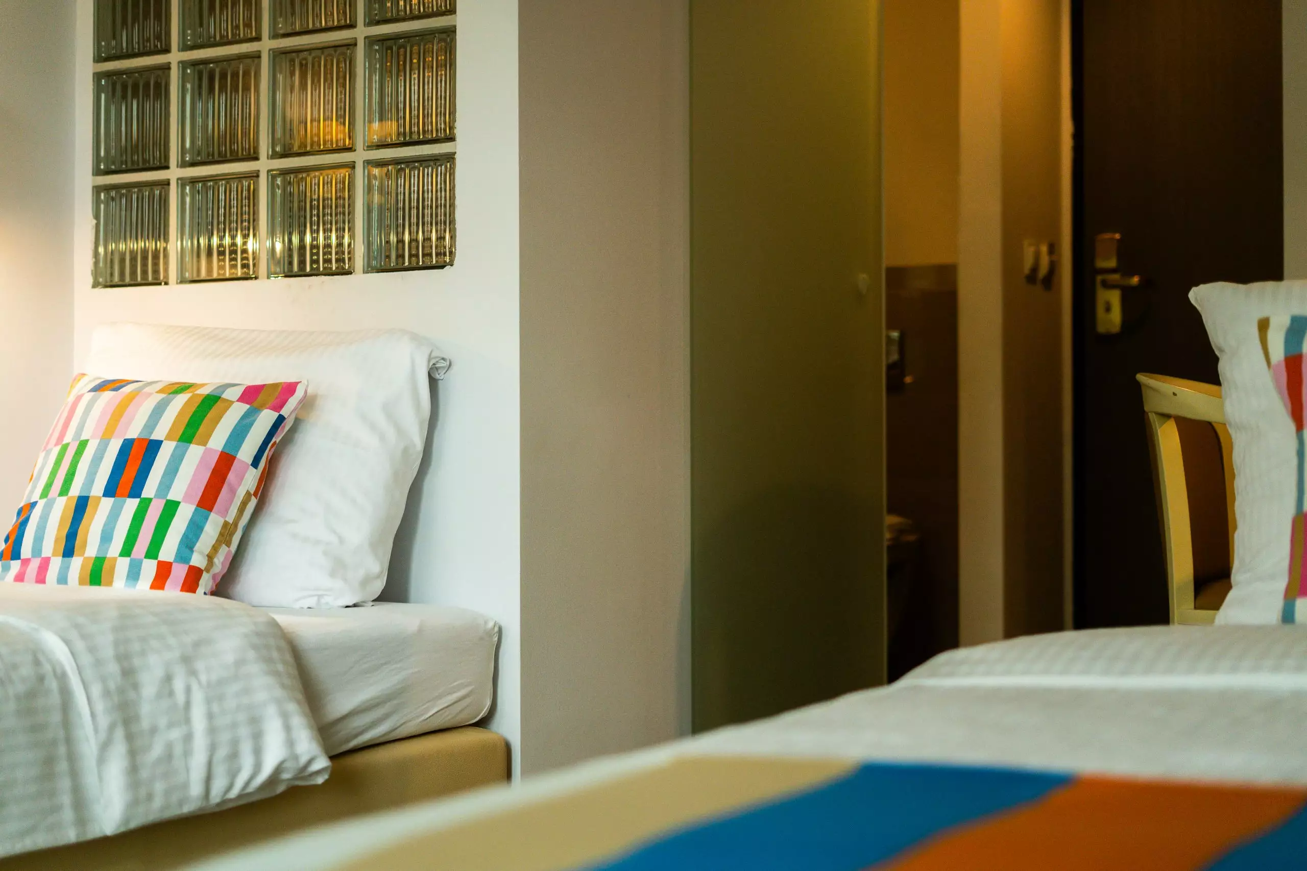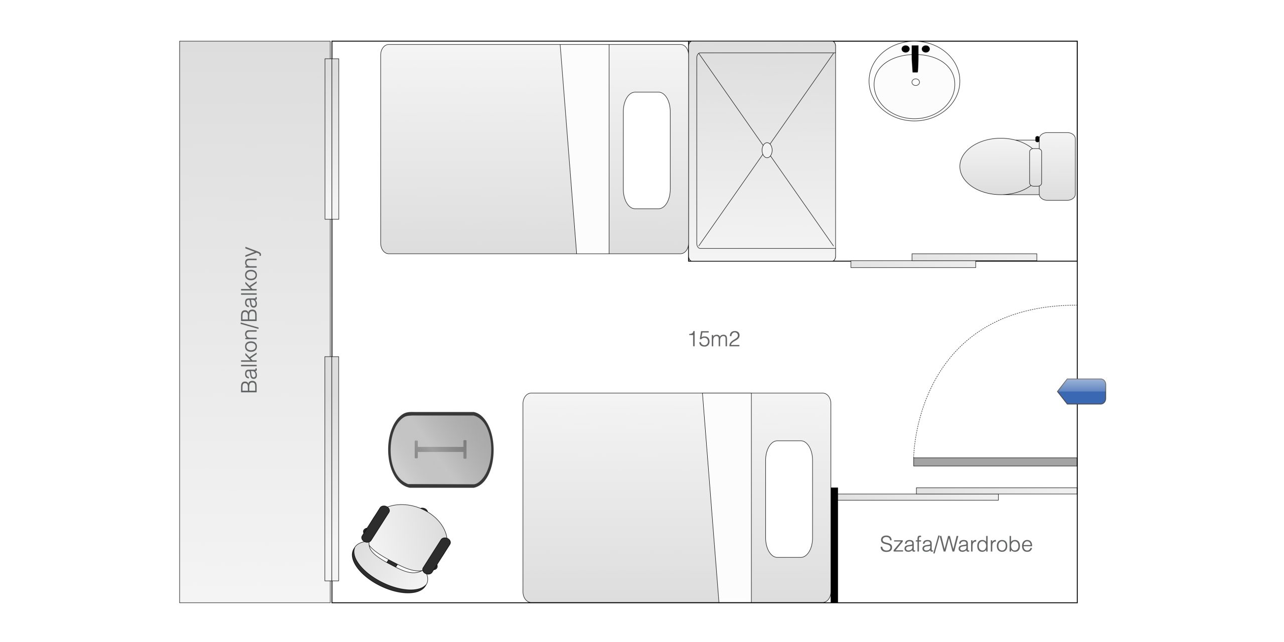 Standard Double to pokój z dwoma łóżkami pojedynczymi i balkonem z widokiem na jezioro. Powierzchnia pokoju wynosi około 18–20 m². Pokój został zaprojektowany w minimalistycznym stylu.