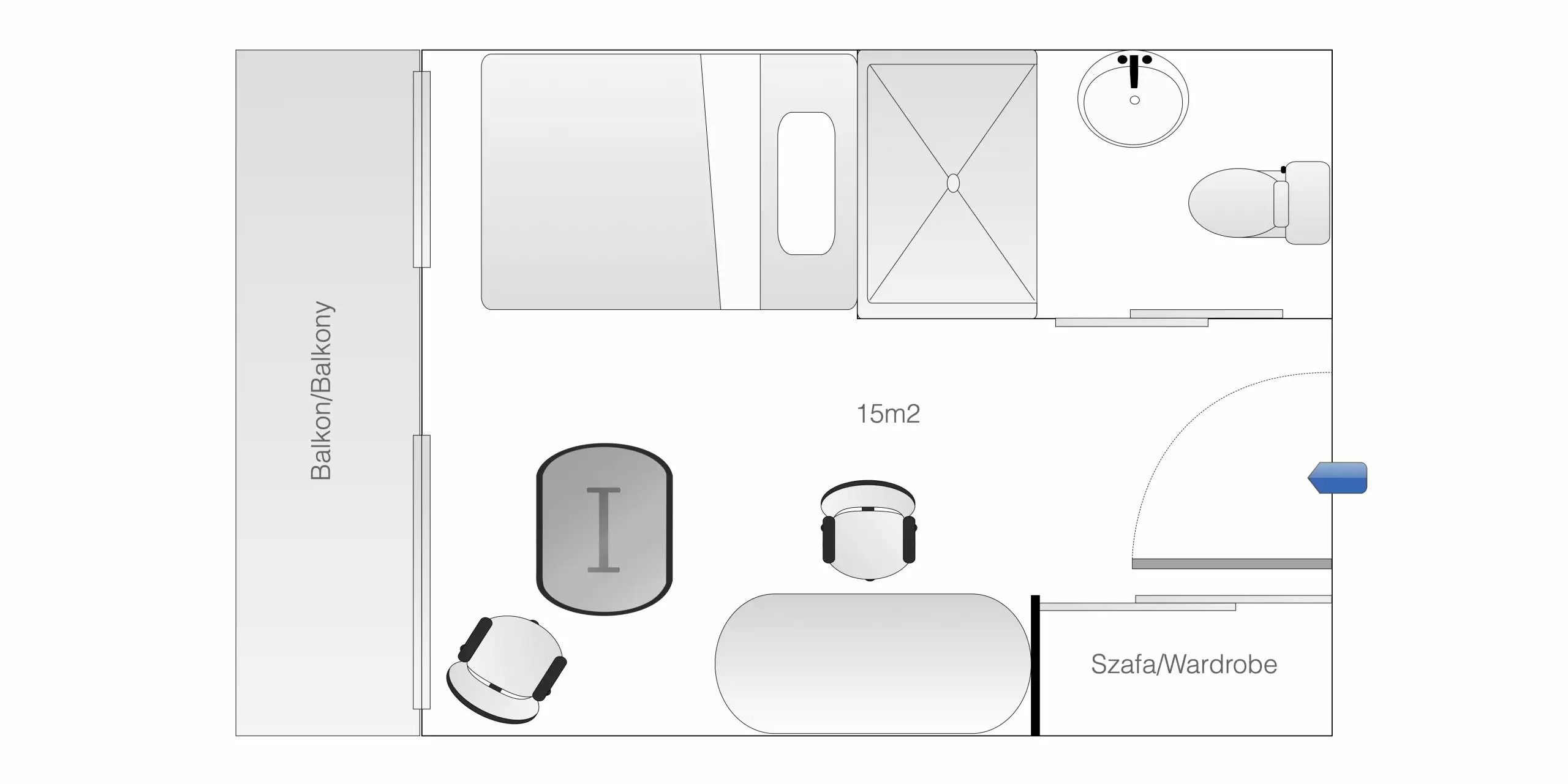 Standard Single to pokój z łóżkiem pojedynczym i balkonem z widokiem na jezioro. Powierzchnia pokoju wynosi około 15–18 m². Pokój został zaprojektowany w minimalistycznym stylu.